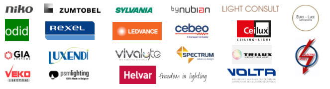 byNubian, Cebeo, CEILUX, Electro Cirkel, Euro-Luce, GIA, Helvar Lighting Controls, Ledvance, Light Consult, Luxendi, Niko, ODID, PSM Lighting, Rexel, Spectrum advies & design, Sylvania, Trilux, VEKO Lightsystems, Vivalyte, Volta, Zumtobel